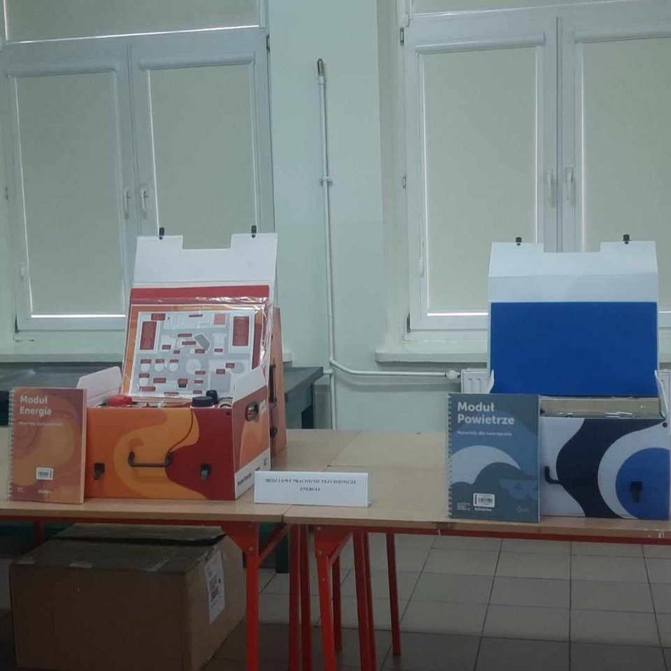 Zakupino m.in materiały edukacyjne  do pracowni OZE m.in. Photon OZE,  Modułowe Pracownie Energia, Powietrze, Woda,  model konwersji energii słonecznej;  Klocki energia: wiatrowa, wodna, słoneczna; oraz stoliki, krzesełka i regały, monitor interaktywny.